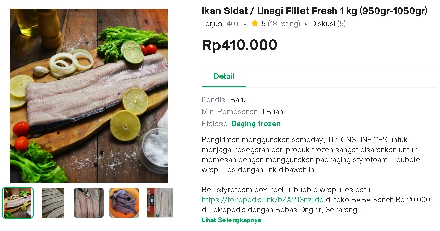 Selain itu yang cukup besar juga kebutuhan Frozen Food yaitu sidat diolah menjadi Fillet Unagi dan Kabayaki sidat bakar khas bumbu tradisional Jepang.
